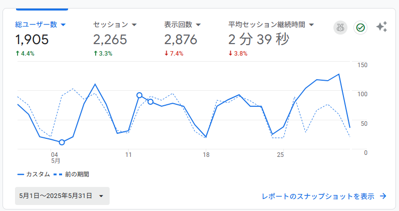 ホームページを開設してから9ヶ月が経過しました。5月のアクセス解析の結果とともに、今月注力した「サイト改善」についてご報告します。
