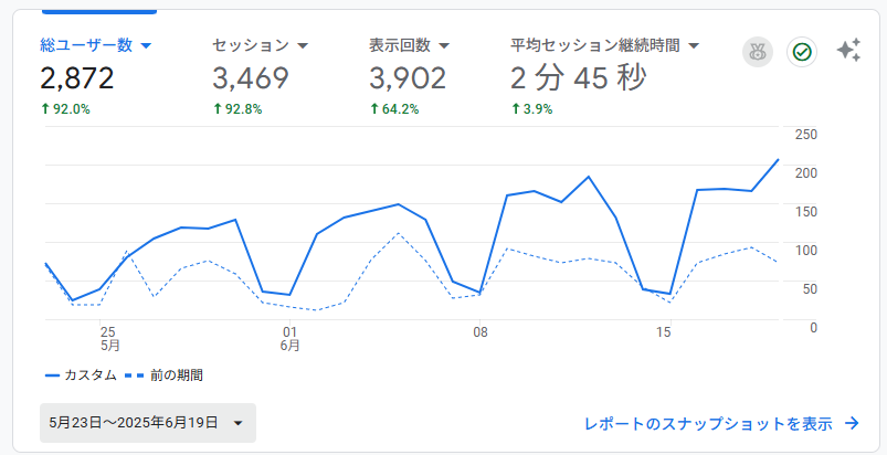 今月はさらにサイトの信頼性を高めるため、「被リンク(他サイトからの紹介)」の獲得に注力しています。 SEO(検索エンジン最適化)において、外部からの評価は非常に重要な指標です。この施策が半年後にどのような結果をもたらすか、今から非常に楽しみです。