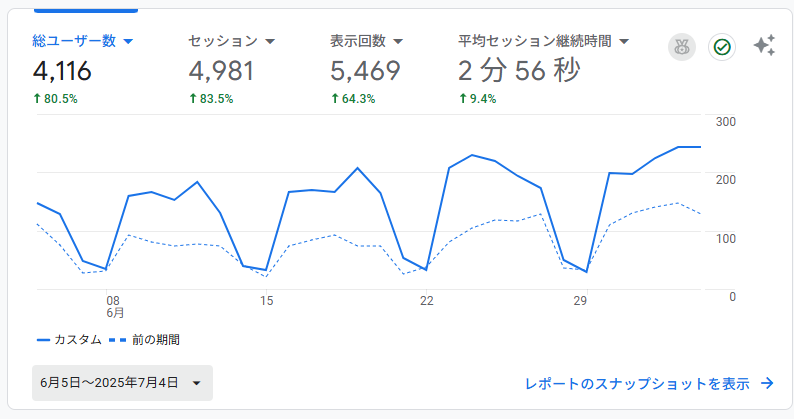 直近30日間のアクセス解析において、広告を一切使わない自然流入のみで、ユニークユーザー数が4,000人を突破しました。