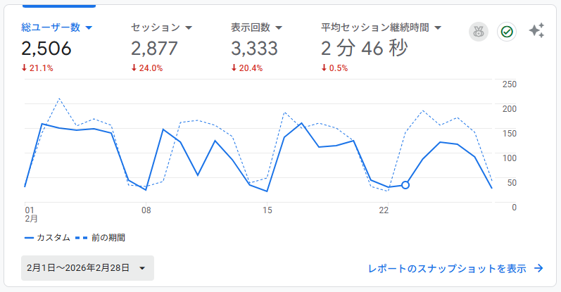 - セッション: 2,877回(前月比 24.0%減少)