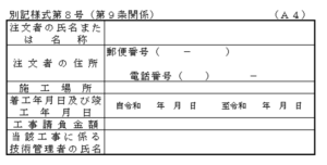 • 工事の規模が、建設リサイクル法第9条3項または4項に規定する建設工事の規模に関する基準以上である場合には、同法第13条第1項または2項の規定による書面またはその写し